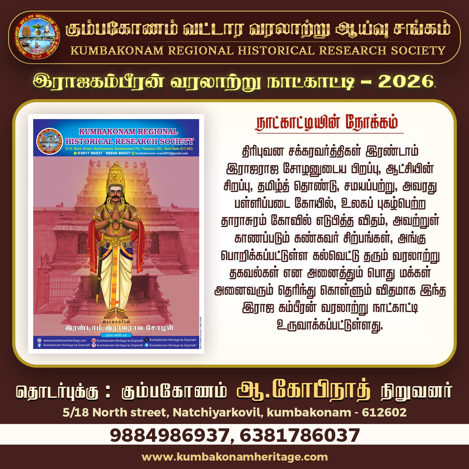 The purpose of this two days (26-07-2025 & 27-07-2025) heritage trail speak the chronical places to the most important valanadu in to the chola dynasty.